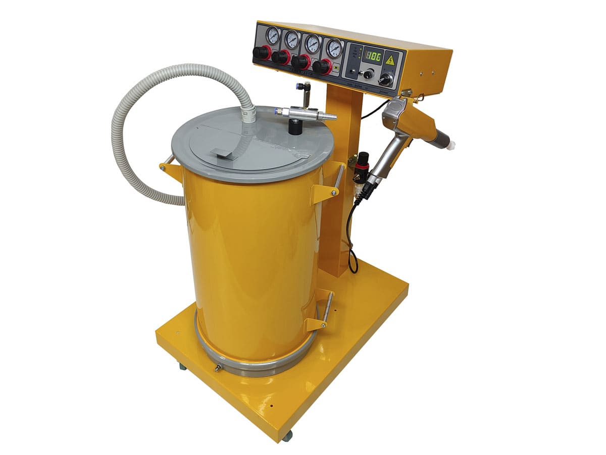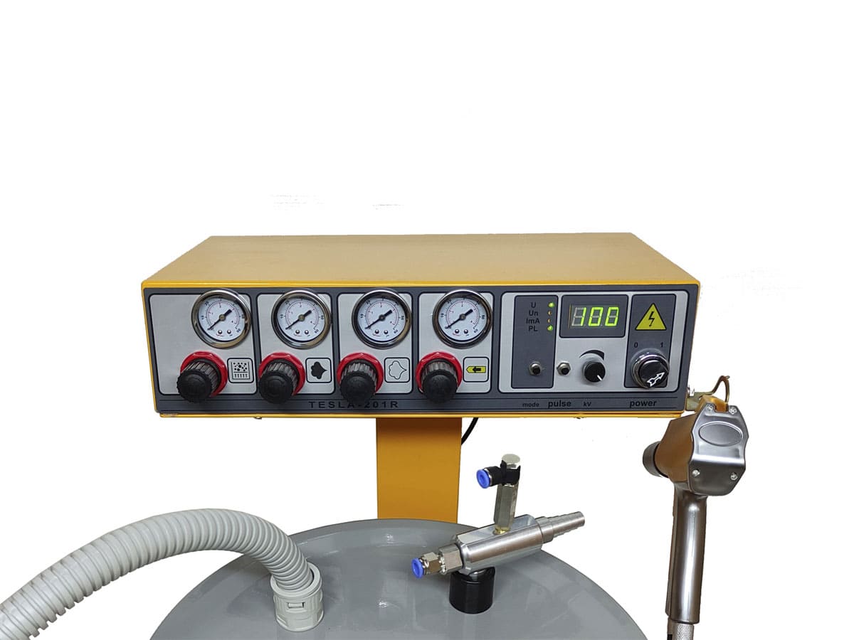 Может комплектоваться различными типами баков. Все регулировки на лицевой панели: подача порошка, транспортного воздуха, обдув коронирующего электрода, ожижение порошка в баке. Имеет на входе регулятор давления и фильтр масло-влаго отделитель. Защита от высокого давления воздуха на входе для предотвращения разрушающего воздействия на пневмокомпоненты.
