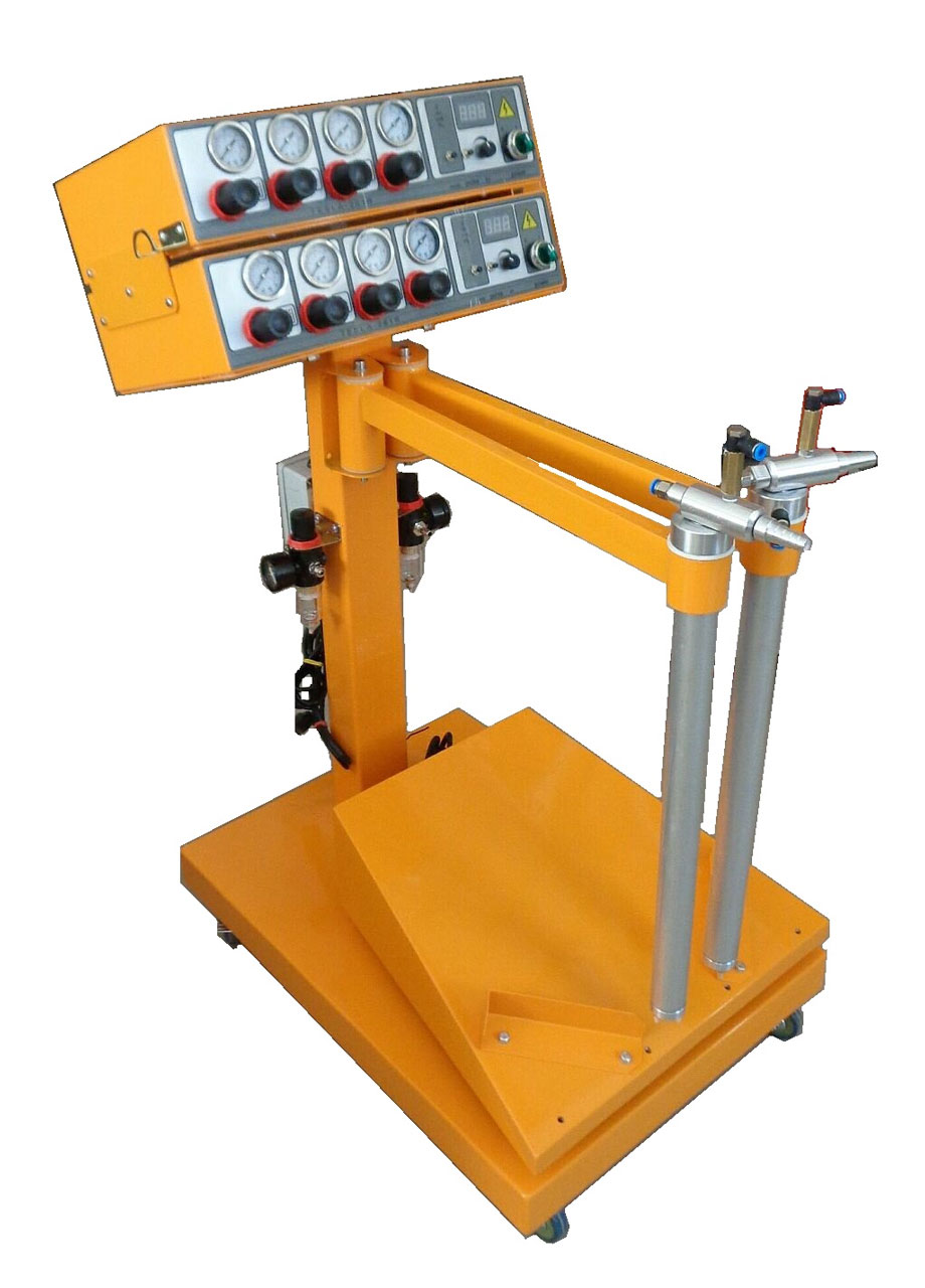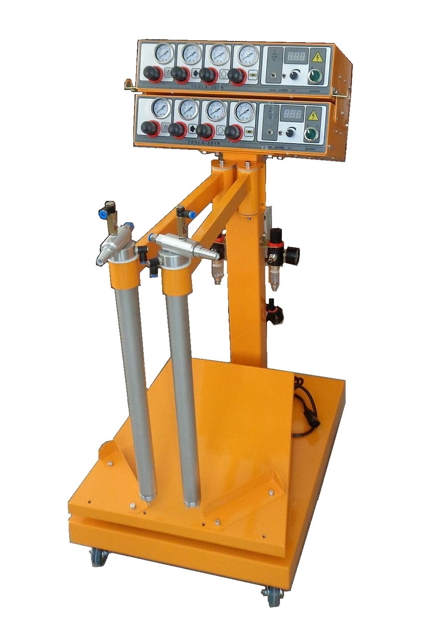 Все регулировки на лицевой панели: подача порошка, транспортного воздуха, обдув коронирующего электрода, ожижение порошка в баке.