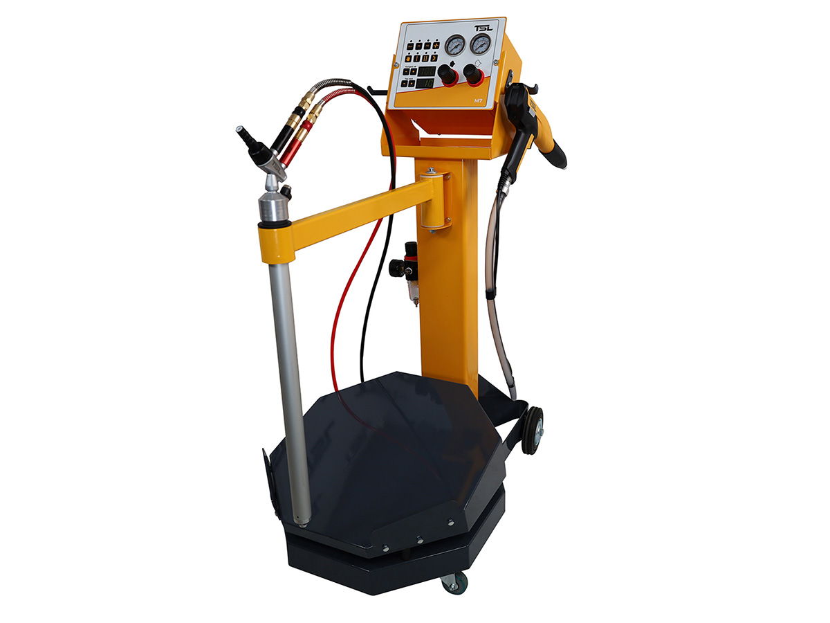 - Все функции установок —ожижение порошковой краски в баке или вибропитателе, регулировка подачи объема порошка, транспортного воздуха, обдув электрода.
