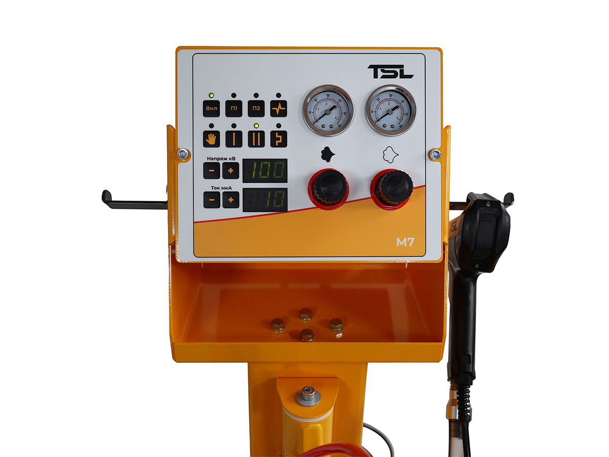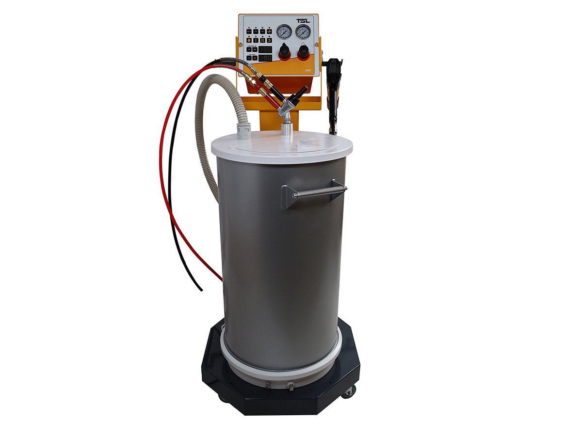 - Все функции установок —ожижение порошковой краски в баке или вибропитателе, регулировка подачи объема порошка, транспортного воздуха, обдув электрода.